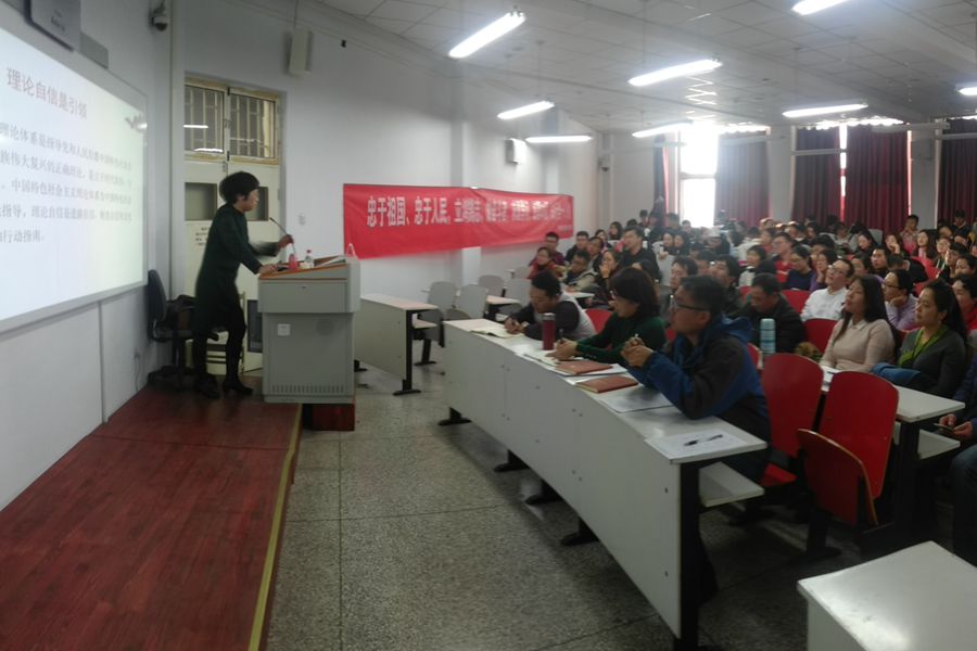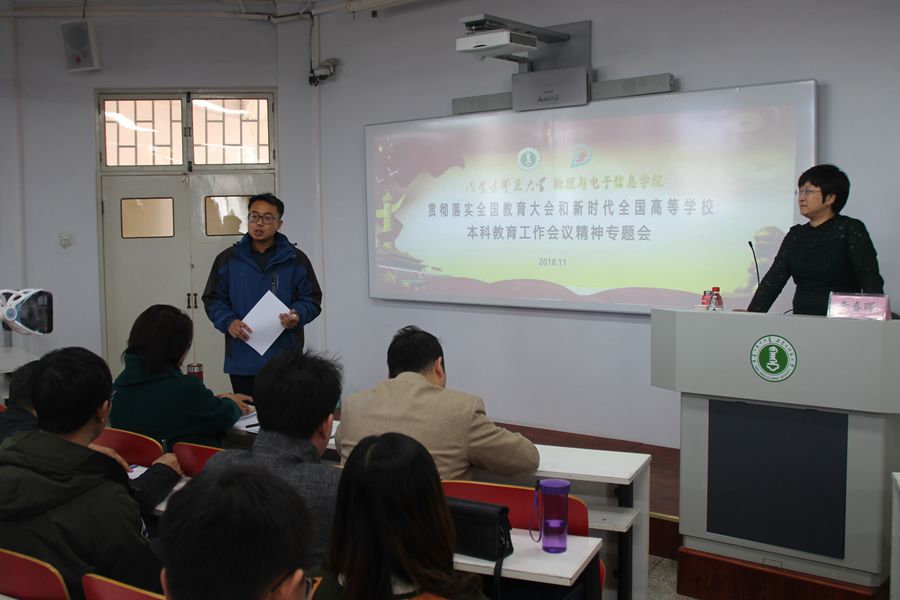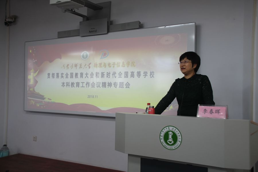 本网讯  2018年11月15日,我院在田楼十二共举办贯彻落实全国教育大会和新时代全国高等学校本科教育工作会议精神会。大会特邀马克思主义学院院长李春晖教授为主讲人,学院党总支书记刘美玲、副书记兼副院长张伟、副院长那日苏、学院教职工及2015级学生参加精神会。