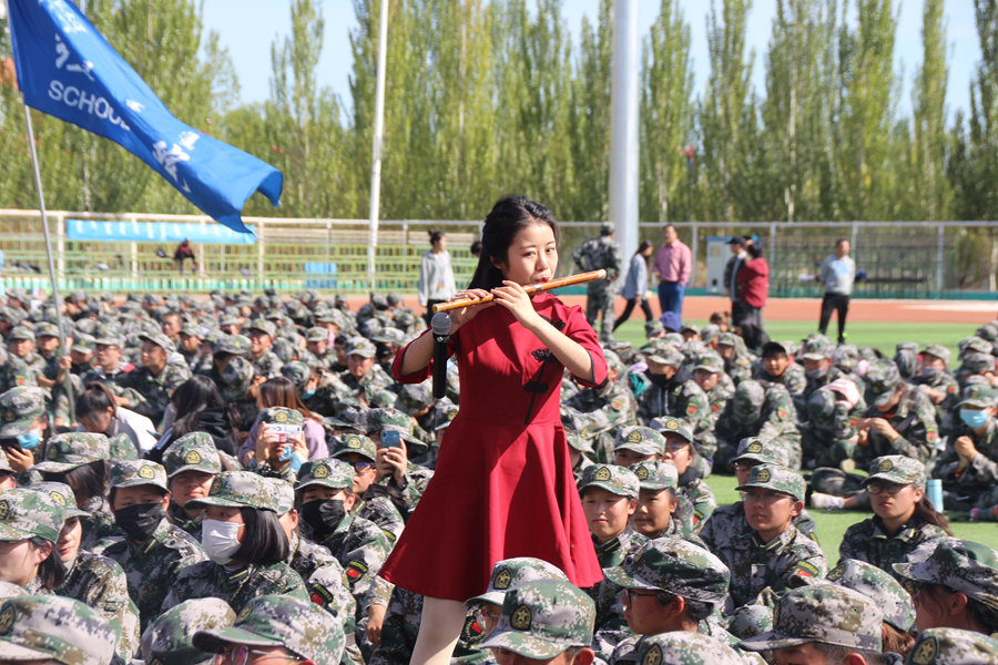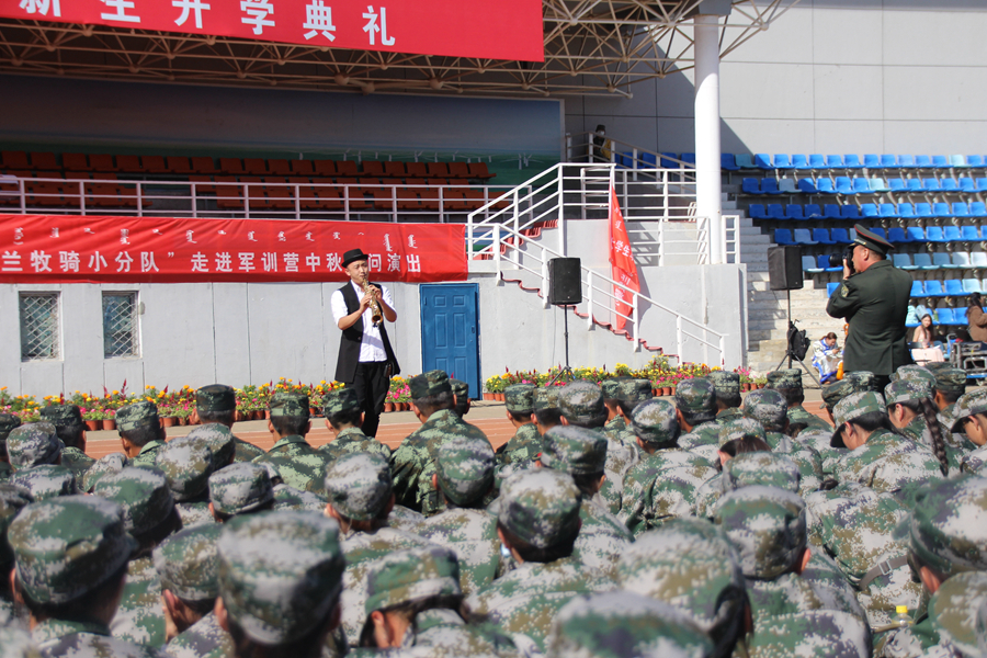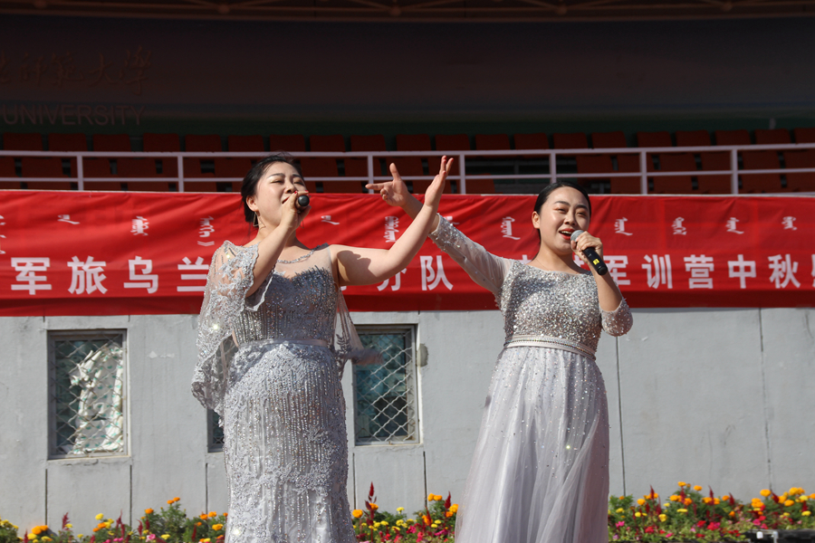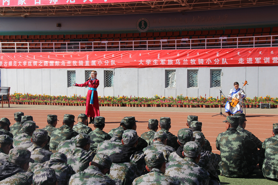 2018年9月24日上午,我校于盛乐校区操场举办“大学生军旅乌兰牧骑小分队”走进军训营中秋慰问演出。演员们用精湛的技艺为初次离开家乡、在异地思亲的新生们带去了属于师大的温暖和感动。
