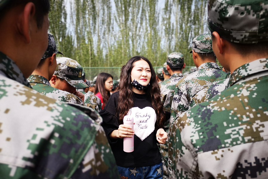 为了在军训考核中取得好成绩,“小绿人”们不仅每天接受着严苛的队列训练,还要练习两首参赛歌曲。一首是我们耳熟能详的师大校歌,另一首则是铿锵有力、让人热血沸腾的军歌,《练,练,练》。这首简短精悍的军歌形象地描述了中国军人艰苦训练甘愿为国家奉献青春的那份执著,同时也带给了同学们无限的动力与热情。