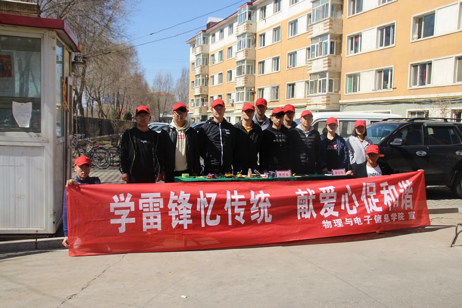 为进一步弘扬雷锋精神,深化学雷锋活动,培养广大青年学生关爱他人,服务社会的优良品质,物理与电子信息学院在“雷锋活动月”通过组织一系列多种多样的活动进行学习雷锋精神,同时结合专业特色,深入社区,发挥社会实践的育人作用。在活动中取得了较为优异的成绩,同时也在社会上为学院、学校扩大了声誉。