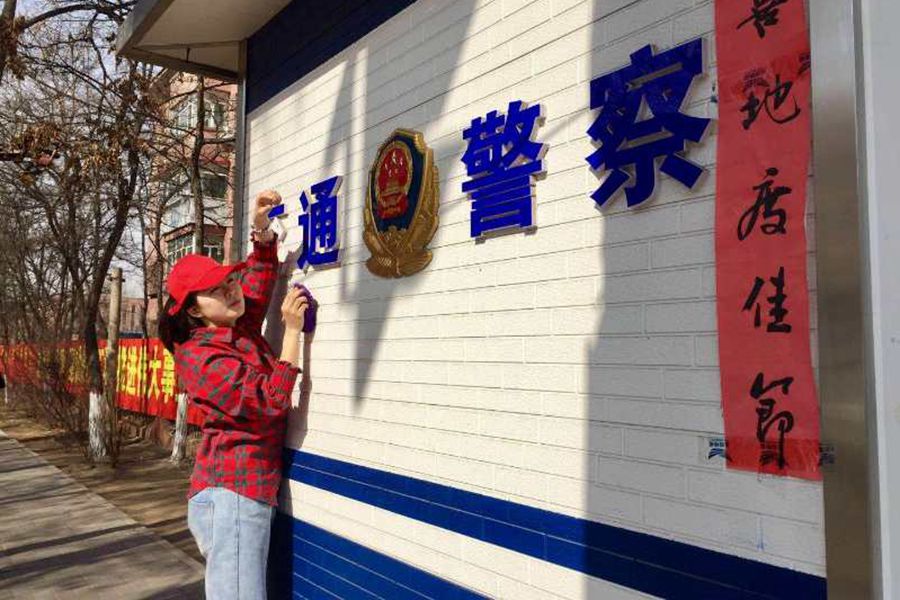 本次活动由学生会副主席德力根杭盖带三支队伍,对卫生清理工作进行统一安排,明确分工。同学们各负其责,相互配合,开始了对岗亭彻底的打扫整理。玻璃,地板,门框,同学们不放过任何一个死角,里里外外都是认真忙碌的身影。通过大家的共同努力,三个岗亭门窗、玻璃擦拭得透亮明净,物品摆放井然有序。每个岗亭都干净整洁,面貌焕然一新。虽然一上午的劳动很辛苦,但对他们来说,为人民服务带来的喜悦与自豪远远多于辛苦。大家以雷锋为榜样,从身边的小事做起,不怕脏,不怕累,为我们环境清洁做出一份贡献。在活动结束后,志愿者们与执勤民警合影留念。