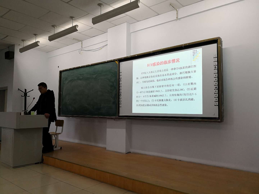 2017年12月8日星期五。呼和浩特市疾病控制预防中心王老师为我院工程一、二班、物理学蒙班同学在行知楼224进行普及艾滋病知识讲座。