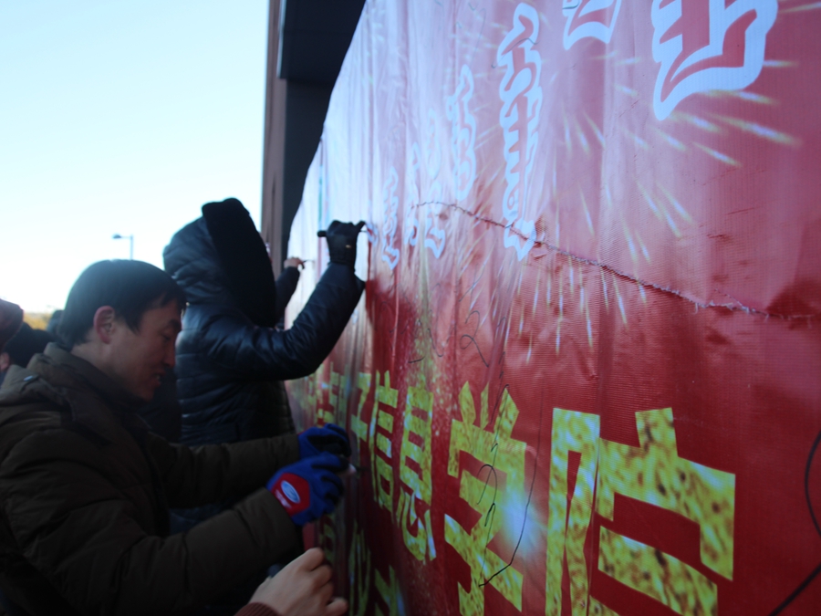 仪式开始,首先由教师代表赵凤歧教授发言,赵老师对前来参加仪式的师生们表示欢迎,并代表全体教师表达了对物电院的美好祝福。随后学生代表李嘉欣同学发言,她代表我院学子期待学院能够在盛乐校区取得新的辉煌成绩。同时,院长特古斯教授在感言中说到:物理与电子信息学院作为一个历史悠久的学院,在赛罕校区取得了许多优异的成绩。来到盛乐校区又是一个新的起点,理工楼硬件设施正在逐步完善,并且拥有优美的学习环境,我们会努力克服种种困难,争取在盛乐校区取得更卓越的成就,使物电院的明天更加灿烂辉煌。全体师生深受鼓舞,报以热烈的掌声,此时礼炮带着美好期待轰鸣着冲向天空,参加仪式的全体师生于理工楼门前合影,以纪念这激动人心的时刻。搬迁仪式的最后,全体老师于幕布上签名留念,并集体参观理工楼,教师们纷纷对这未来工作学习的场所良好的基础设施条件赞不绝口。