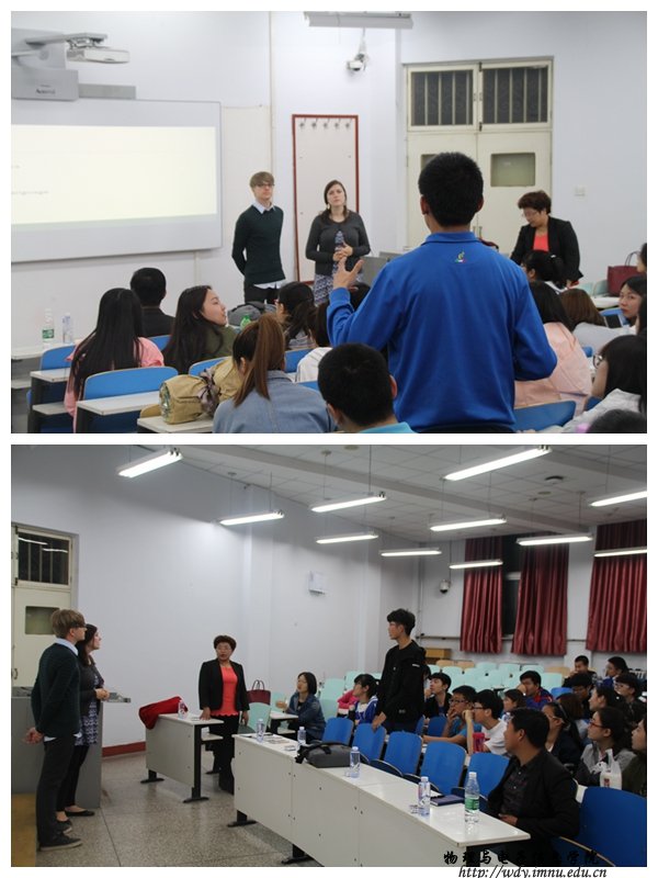 本次活动由16级物理汉班班主任孙咏萍副教授主持,并特邀来自美国芝加哥的自由女作家Natalie Mills与外国语学院外教讲师Matt作为主讲人,学工办老师苏雅拉以及我院16级的各班同学们共同享受此次交流学习大会。