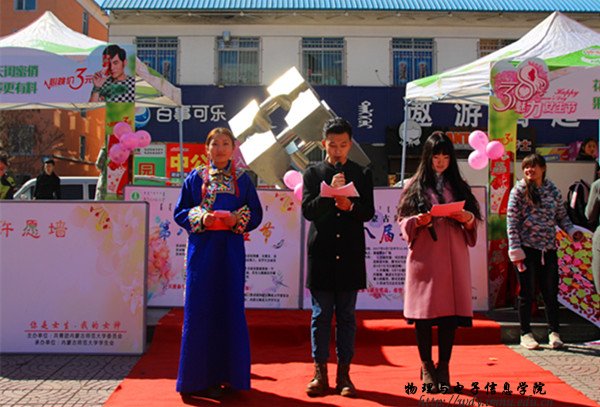 本网讯 2017年3月7日,由共青团内蒙古师范大学委员会主办,由内蒙古师范大学学生会和物理与电子信息学院学生会承办的第八届女生节在师大遨游腾广场拉开帷幕。本届女生节的主题为“花样女生节,缤纷心愿现”,希望通过开展高品质、高格调的人文活动,充分展现女生自身思想、道德修养、文化内涵、心理健康等综合素质。