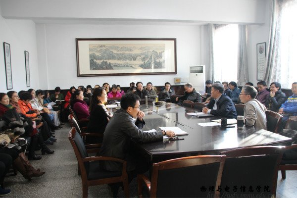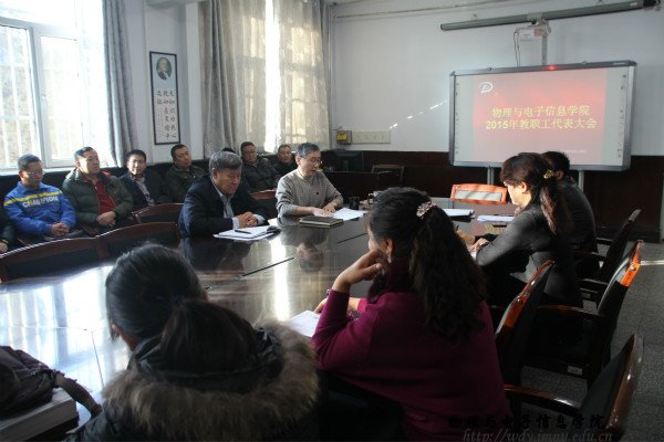本网讯 20151210日下午,我院在物理楼一楼会议室召开了全体教职工代表大会,出席会议的有我院院长特古斯教授,党总支副书记何小龙老师,副院长吉日嘎拉教授,副院长刘美玲老师等领导老师,并邀请了部分已退休的老教。大会上,特院长我院现状和近几年发展情况进行了简要的概述。其中就我院的教学环境,本科生及研究生教育,毕业生发展等做出了客观的总结,并以前段时间的教学审核评估后教育部对我院提出的建议为基准对我院的未来发展做出了整体的规划。同时我院参与盛乐校区的教学楼以及宿舍楼的划分的工作而且取得了好的成效。会议中各位老师也纷纷发表了意见,以最大限度去改善我院现教学水平及学术发展为目标而努力。此次会议的召开,使各位教职工对我院的发展情况有了更加深入的了解,从自身做起为物电院的发展而共同努力。