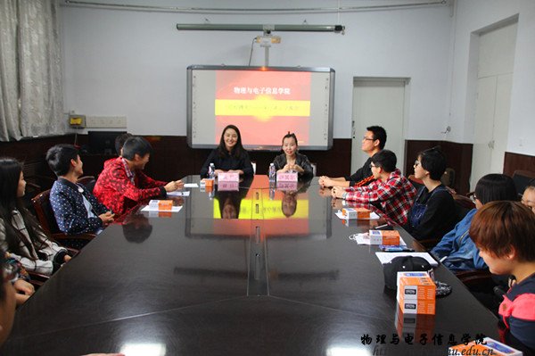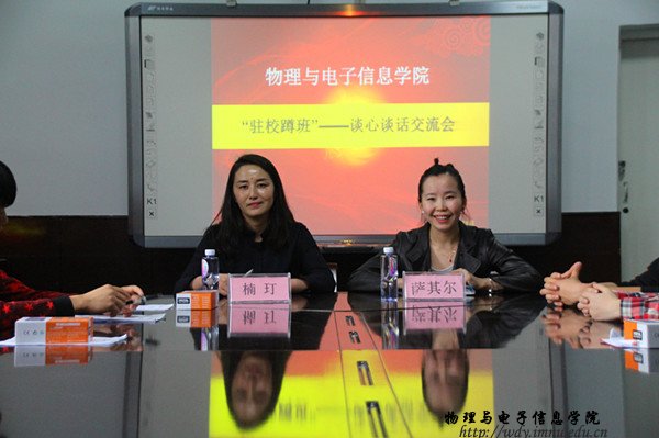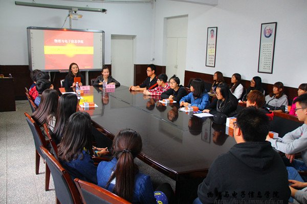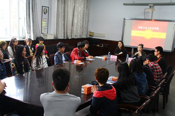 201641日,我院在物理楼会议室召开“驻校蹲班”——谈心谈话交流会,校团委楠玎老师、我院团总支书记萨其尔老师以及15级科技班同学参加本次会议。早在上周一,楠玎老师就与15级科技班同学一同组织了一次有关“驻校蹲班”的班会,班会中楠玎老师向同学们传达了2016年我校开展“驻校蹲班”的通知,讲解了“驻校蹲班”的深层意义,并详细介绍了围绕其展开的相关活动和工作要求。今天,楠玎老师为了更加深入的了解了学生思想动态和学习生活状况,从而与同学们更好地交流沟通,特别召开本次谈心谈话交流会。会上,楠玎老师向同学们了解了在日常的大学生活中、学习中等多个方面的近况和出现的问题。老师对同学们所反映的问题做了认真的记录,同时鼓励同学们积极地参与到日常学院开展的各类活动中,在活动中不断地提升自己。通过本次交流会,老师们对同学们的思想动态和学习生活状况有了更加深入的了解,为日后更加全面地加强青年学生群众工作打下了坚实的基础。