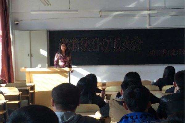 本网讯 2015年1014日下午,我院在120教室召开了12级物理汉班教育实习动员大会,出席会议的老师有我院副院长吉日嘎拉教授,实验创新部主任曹永军教授和12级物理汉班班主任李瑞芳老师。动员大会上老师们分别就实习的重要性、实习对于走向工作岗位的帮助以及实习时应该注意的事项进行了深入的讲解,并要求大家保质保量的完成实习任务。大会的最后吉老师鼓励大家珍惜机会,认真对待,争取通过实习使自己的能力得到提高。