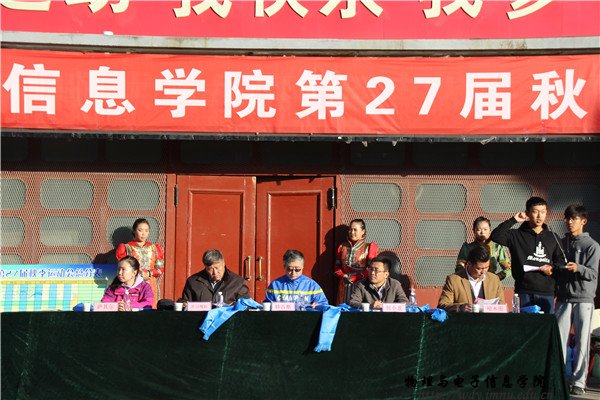 本网讯 2015年10月18日上午,在我校的东操场,伴随着庄严的国歌与嘹亮的入场口号,我院的第27届秋季运动会拉开帷幕。我院院长特古斯教授,党总支副书记何小龙老师,副院长吉日嘎拉教授,团总支书记萨其尔老师等多位领导、老师及各班班主任共同出席此次院运会。入场式上,国旗队、彩旗队、花束队、裁判代表方阵、各班的方阵排成整齐的队列,迈着雄健有力的步伐走过主席台。在运动员代表、裁判员代表庄严宣誓后,特古斯院长致开幕词,并由何小龙老师宣布本届运动会正式开幕。随着运动会开幕式的结束 ,吉日嘎拉教授打响了本届院运会的第一枪,运动会各项赛事开始有序进行。