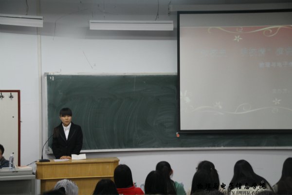 本网讯 2015年11月16日晚,我院学习部在田楼十共举办主题为“知校情 明校史”演讲比赛。此次比赛共有8位选手参加,由主席团和各个部长担任评委。同学们以《师大的天空》《我心中的师大》等为演讲题目,展开了精彩的演讲。同学们演讲有声有色,很有特点,把每个人心中师大的轮廓,描绘的生动形象,淋漓尽致。在比赛接近尾声时,来自15级物理蒙班白戈力同学,用马头琴弹奏一首深情的曲目,把全场的气氛推向高潮。最终,我院物汉班孙旭涛同学凭借精彩的演讲和出色的发挥,赢得了本次比赛的第一名。此次演讲比赛给同学们提供了一个展现自我的舞台,增进了同学们的自信心。同时丰富了大学生的精神文化生活。