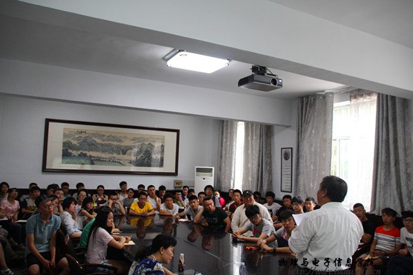 本网快讯 2015714日下午,我院在物电楼会议室召开了12级物理系教育实习动员大会,会议由我院副院长吉日嘎拉教授主持。动员大会上吉日嘎拉老师讲解了实习的重要性、实习对于走向工作岗位的帮助以及实习时应该注意的事项,并要求大家保质保量的完成实习任务。大会的最后老师鼓励大家珍惜机会,认真对待,争取通过实习使自己的能力得到提高。