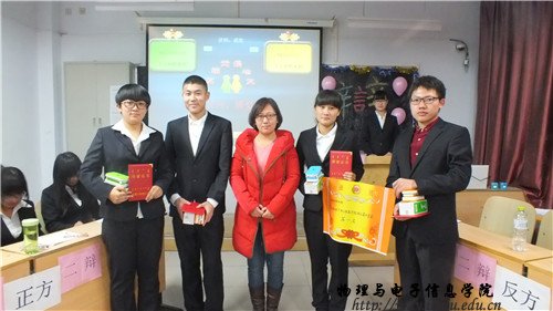 本网讯 2014年12月8日晚七点,我院于田楼111教室举办辩论赛决赛,我院学工办宋志强老师、塔娜老师及学生会副主席史明洋担任本次评委。