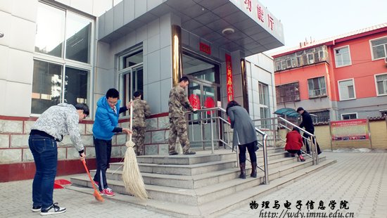 本网快讯 在雷锋同志诞辰75周年来临之际,为大力弘扬雷锋同志精神和构建健康和谐校园,我院于2015年3月5日举办了雷锋日系列活动之慰问退伍军人。在活动中,我院的志愿者们和子弟兵们相互协作,共同打扫卫生。在活动中,志愿者们听老爷爷讲雷锋故事,和老奶奶聊家常,和年轻战士话理想,身体力行,共同实践和继承着雷锋同志的优良传统。通过此次活动,我院的志愿者们不仅提高了自身的社会实践活动能力,更是大力弘扬了以社会主义核心价值观为核心的“奉献、友爱、互助、进步”的志愿者精神,这也将为我院日后雷锋日系列活动打下坚实基础。