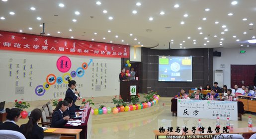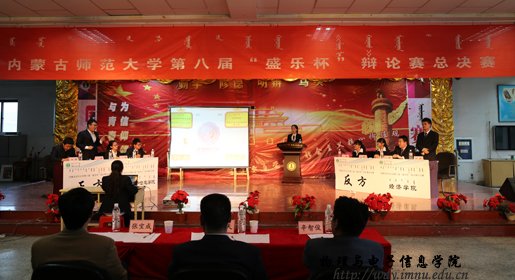 516日晚,由共青团内蒙古师范大学委员会主办,内蒙古师范大学法政学院承办的第八届“盛乐杯”辩论赛在盛乐、赛罕校区同时圆满落幕,校党委宣传部部长张宝成教授、法政学院党总支书记张树天教授、计算机与信息工程学院党总支书记辛智俊副研究员、校教务处副处长吴海山教授,旅游学院副院长长安副教授,法政学院钢特木尔副教授分别应邀担任了总决赛蒙汉语组的评委。校团委书记斯钦老师,校团委副书记许琳老师以及各学院团总支书记莅临观看了总决赛。