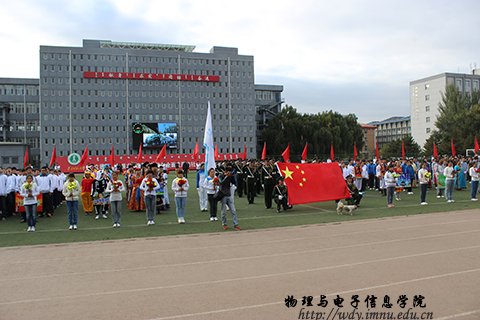 院长特古斯教授致开幕词,他指出,体育运动历来被人们誉为是一种力量的角逐,智慧的较量,风采的展示,理想的放飞。他希望各位运动健儿在本届运动会上奋勇拼搏,用无限的活力和青春风彩展示能力卓越、身心健康的物理与电子信息学院学生的风貌!为我院体育运动事业留下灿烂的一页。