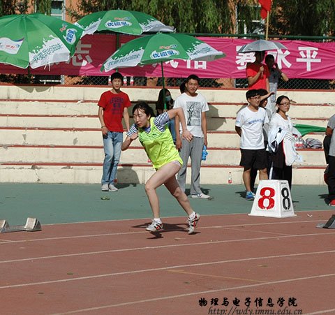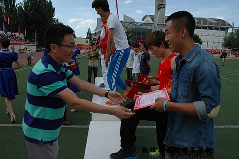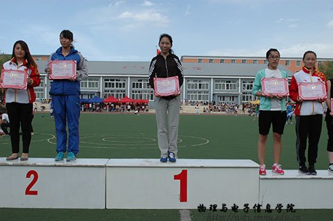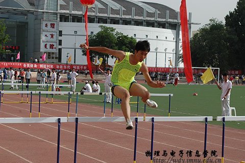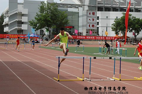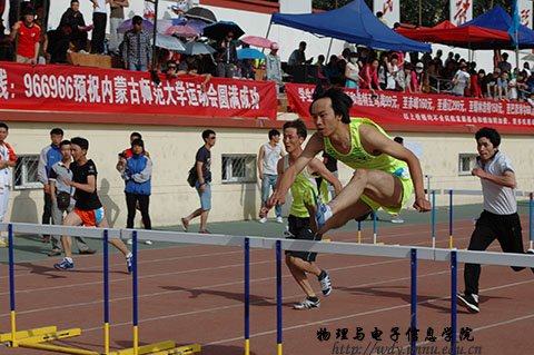 在今天的比赛中我院健儿再创辉煌:哈布日获得女子400米栏第一名、萨日娜获得女子跳高第二名、顾啸天获得九项全能第一名、刘国玉获得男子铅球第八名、张振元获得男子110米栏第六名、丁泽民获得男子400米栏第六名、男子4*100米获得第四名。